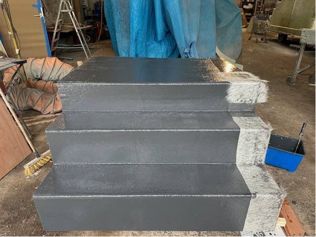 Une fois le moulage terminé et la coque durcie, L’escalier est alors inspecté pour vérifier la régularité des marches, l’adhérence de la surface et l’absence de défauts. Des finitions peuvent être ajoutées, comme des bandes antidérapantes intégrées.